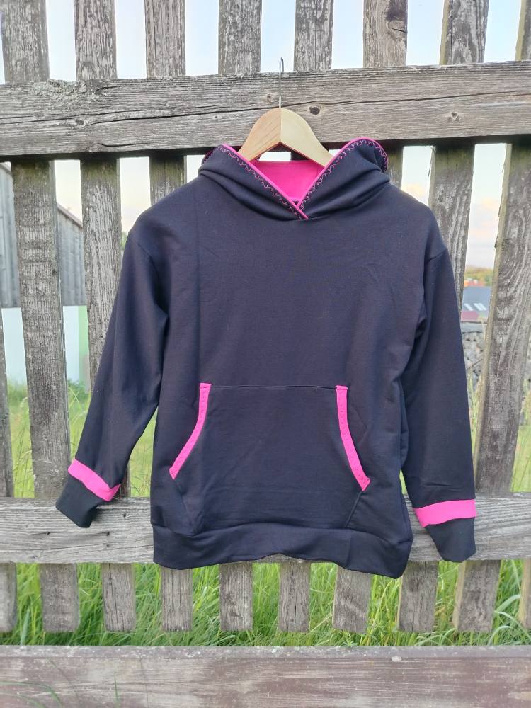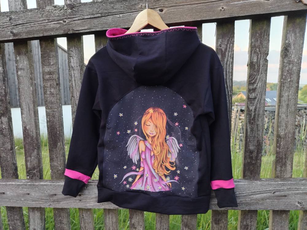 Andělská mikina pro dceru. Panel s andělem si vybrala sama. A já si užila práci s detaily. Hlavně pak míšení černé a růžové barvy.