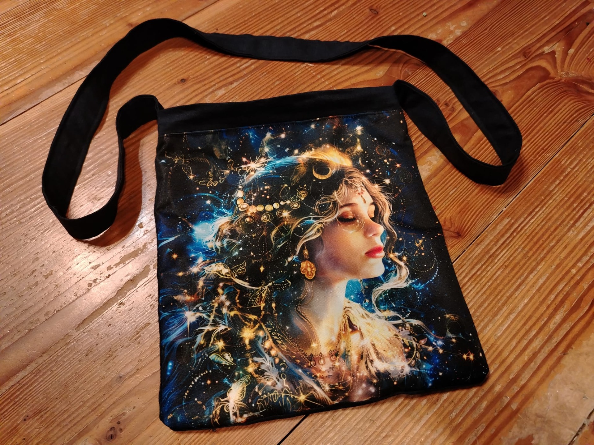 Kapsička přes rameno. Lněná, se zipem, vepředu obrázek z kočárkoviny.
