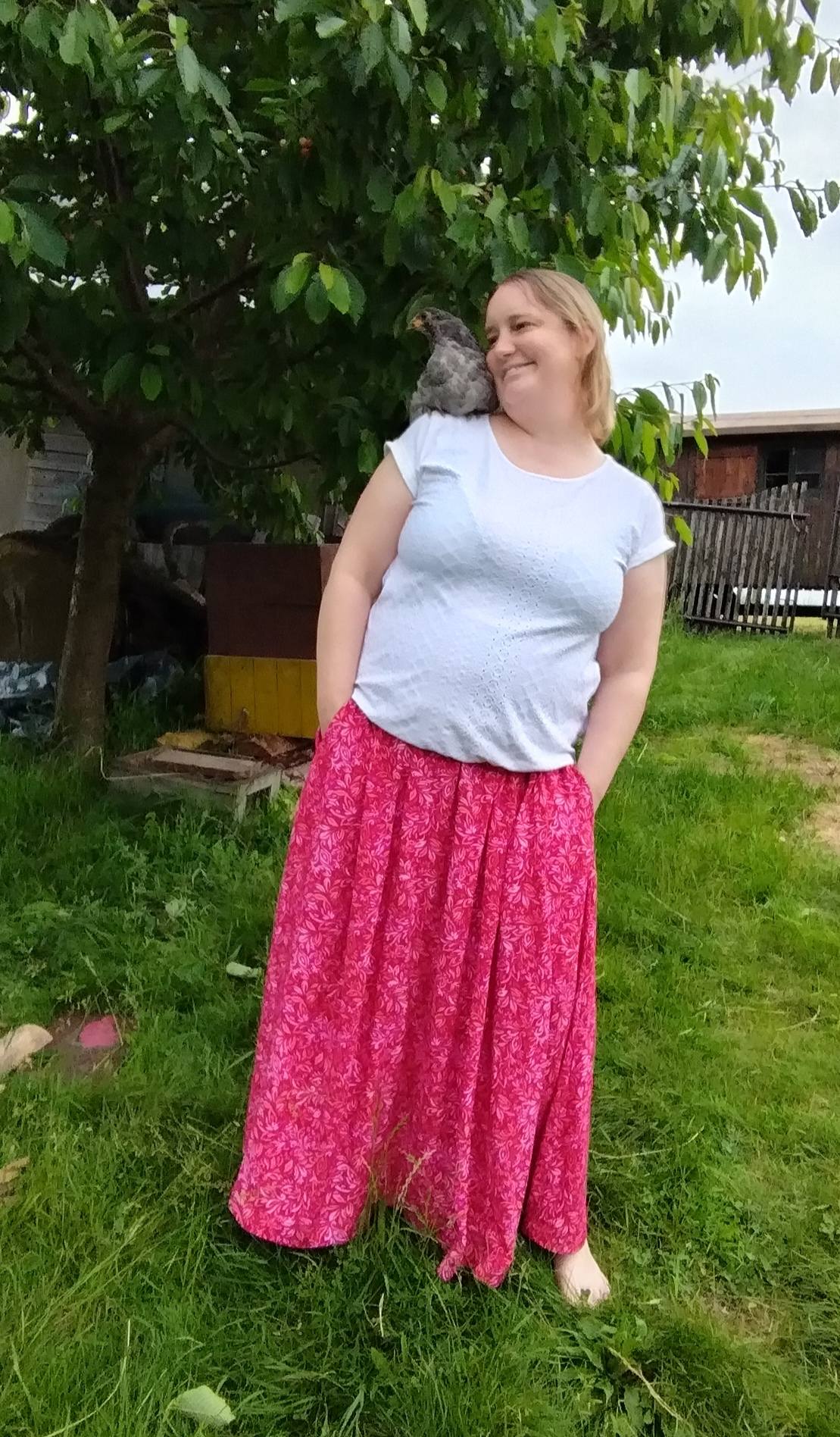 Nová víc-než-půlkolová sukně s kapsami. Nový střih. Lehká, vzdušná, prostorná, pohodlná.
