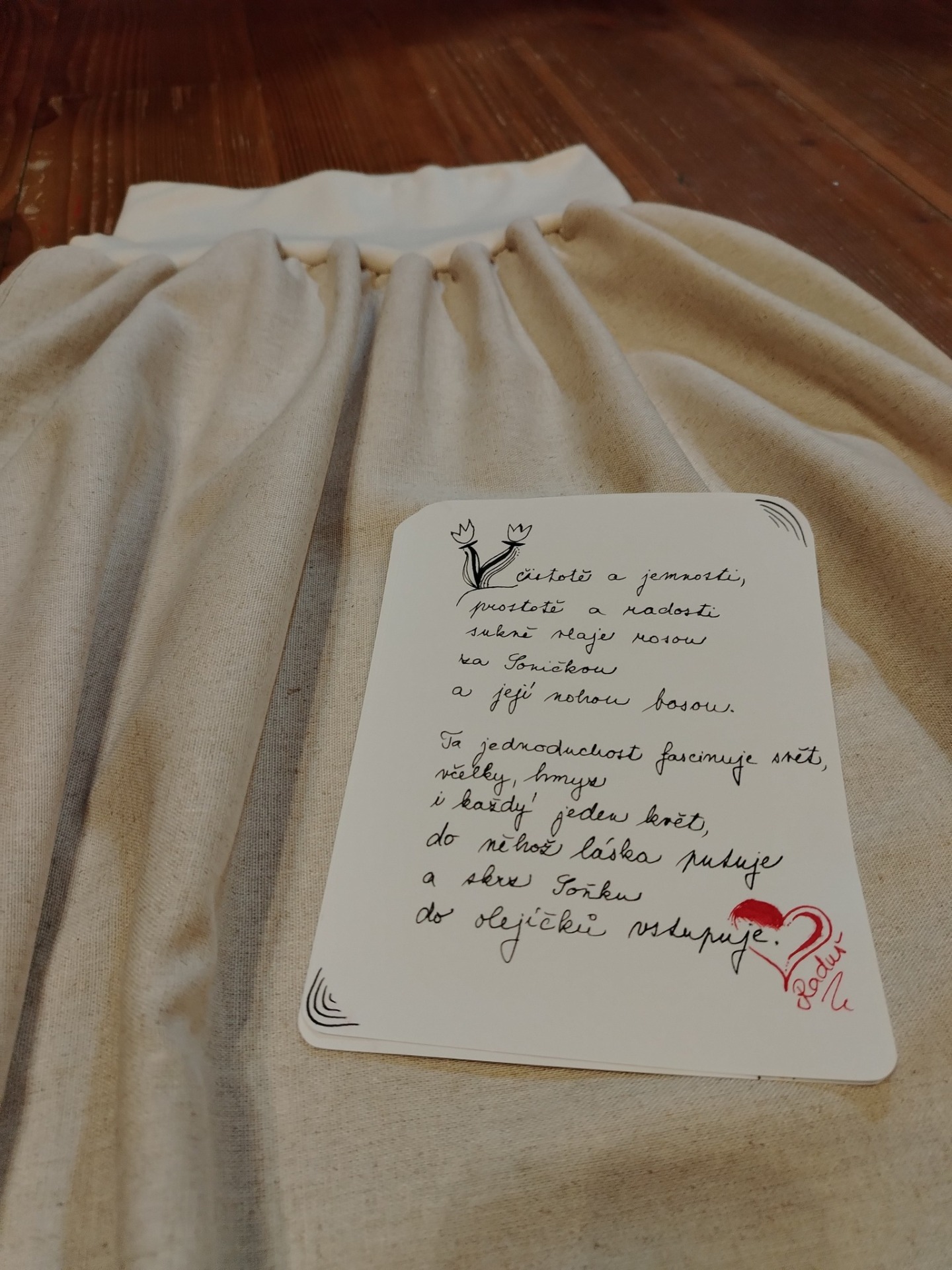 Když byla ušitá, pověsila jsem ji do obýváku a přišla k ní i báseň :